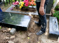 Затем мы вновь вернулись на кладбище: нам предстояло демонтировать основание надгробья, с чем мы и справились на следующем этапе работы.
